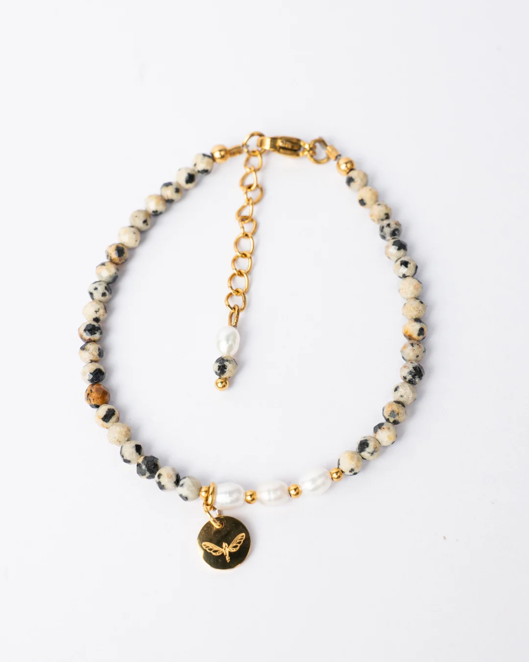 Гривна Anima съчетава естествени камъни, перли и стомана – комбинация, която носи хармония, енергия и вътрешен блясък.