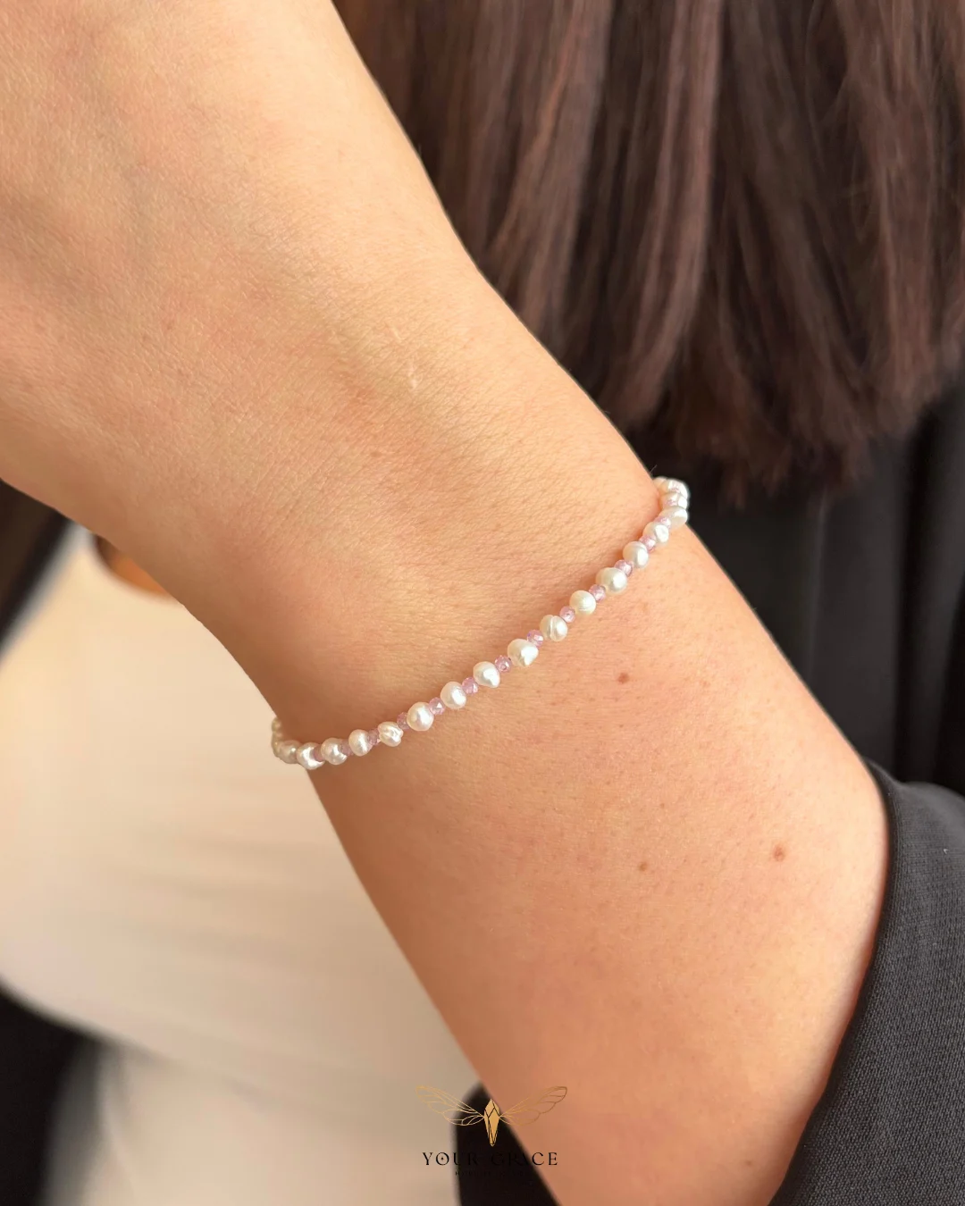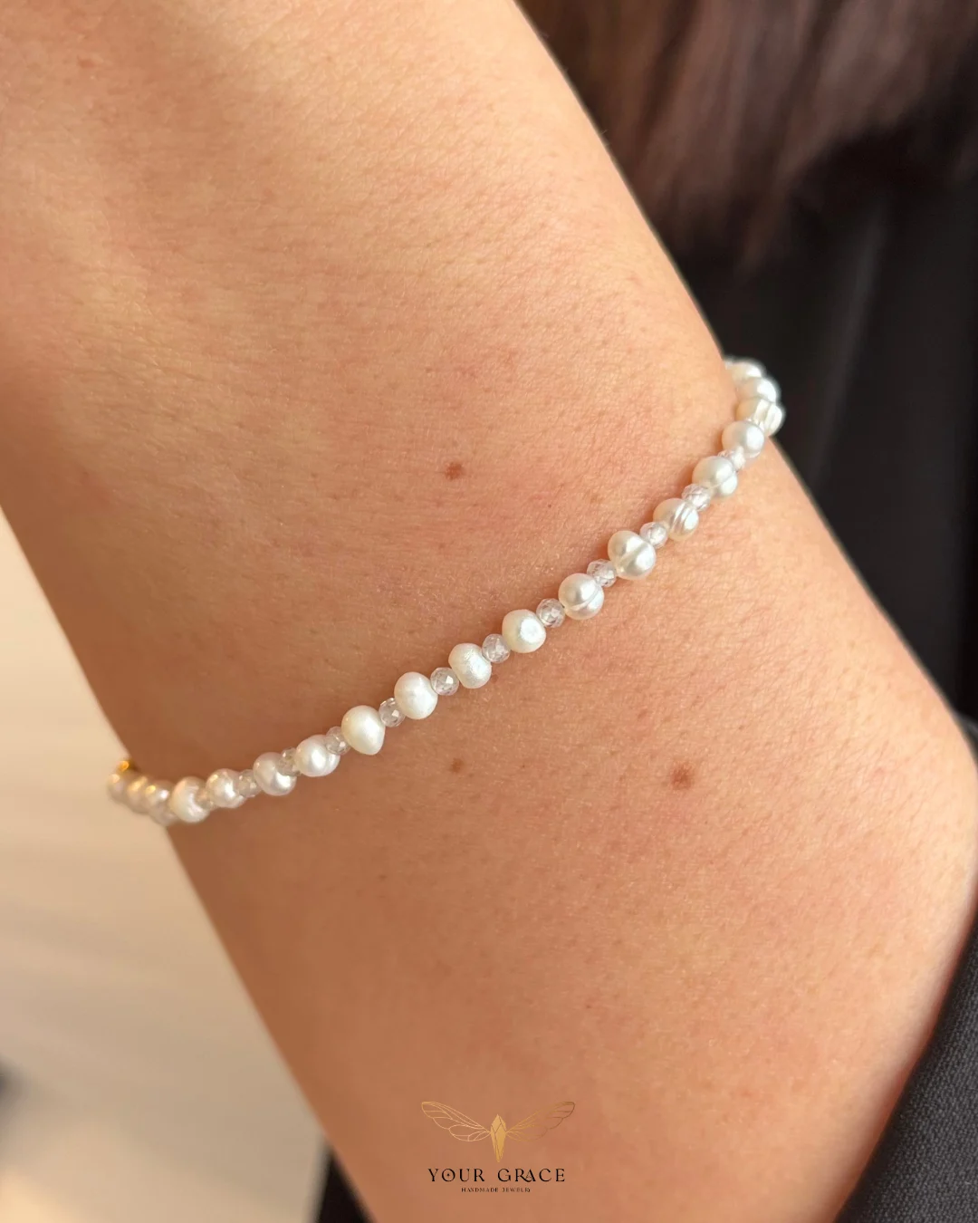 Гривна Precious е създадена като нежно допълнение към колие Precious -фина и изключително женствена. В дизайна ѝ се редуват естествени перли и циркониеви кристали, създавайки мек ритъм и деликатен блясък около китката.Това е гривна, която можеш да носиш в ежедневието или в по-специалните за теб моменти.